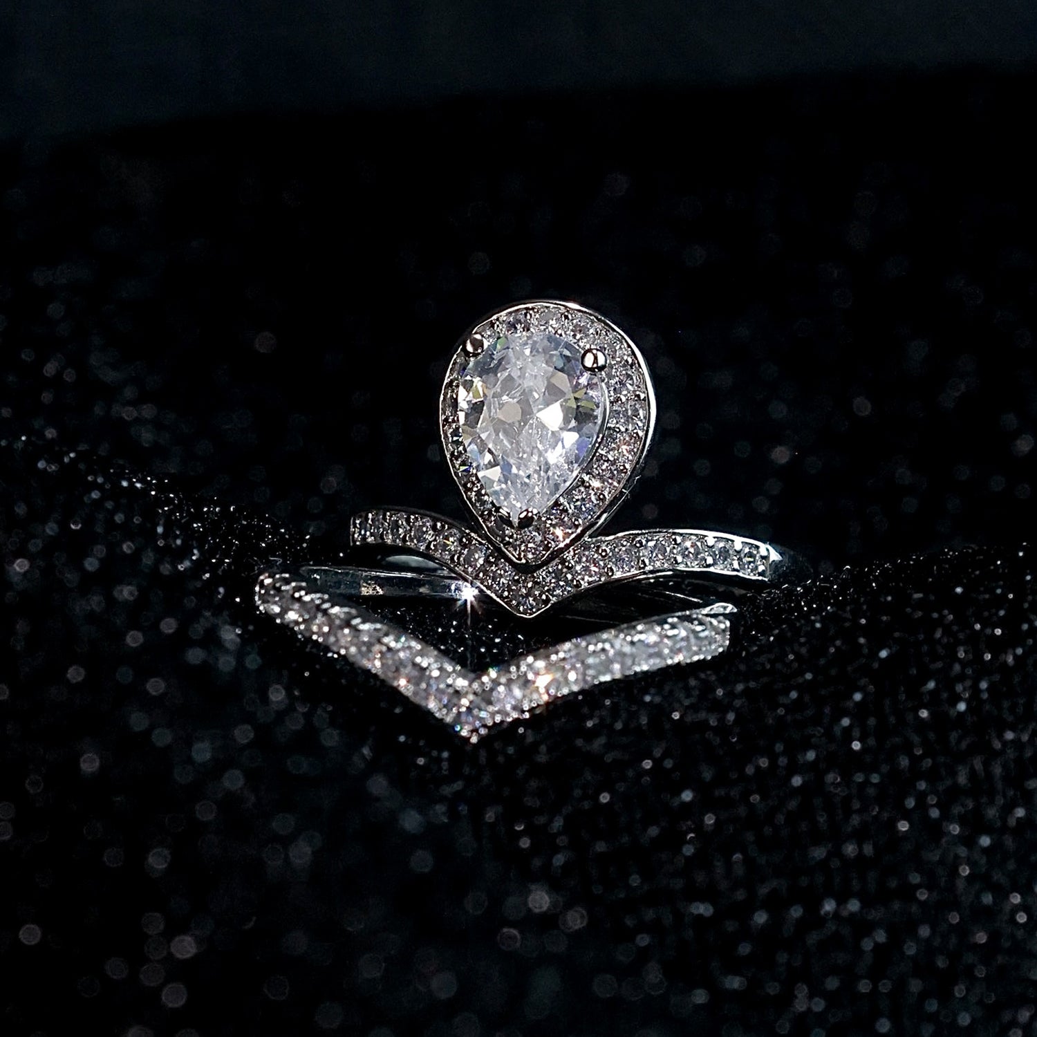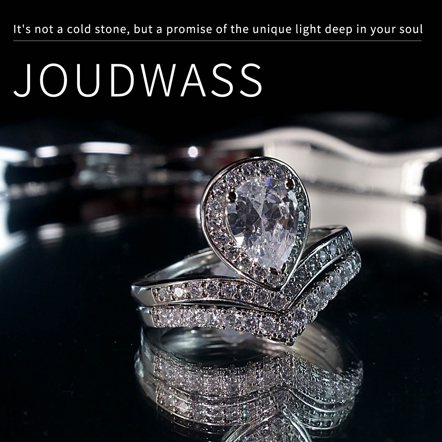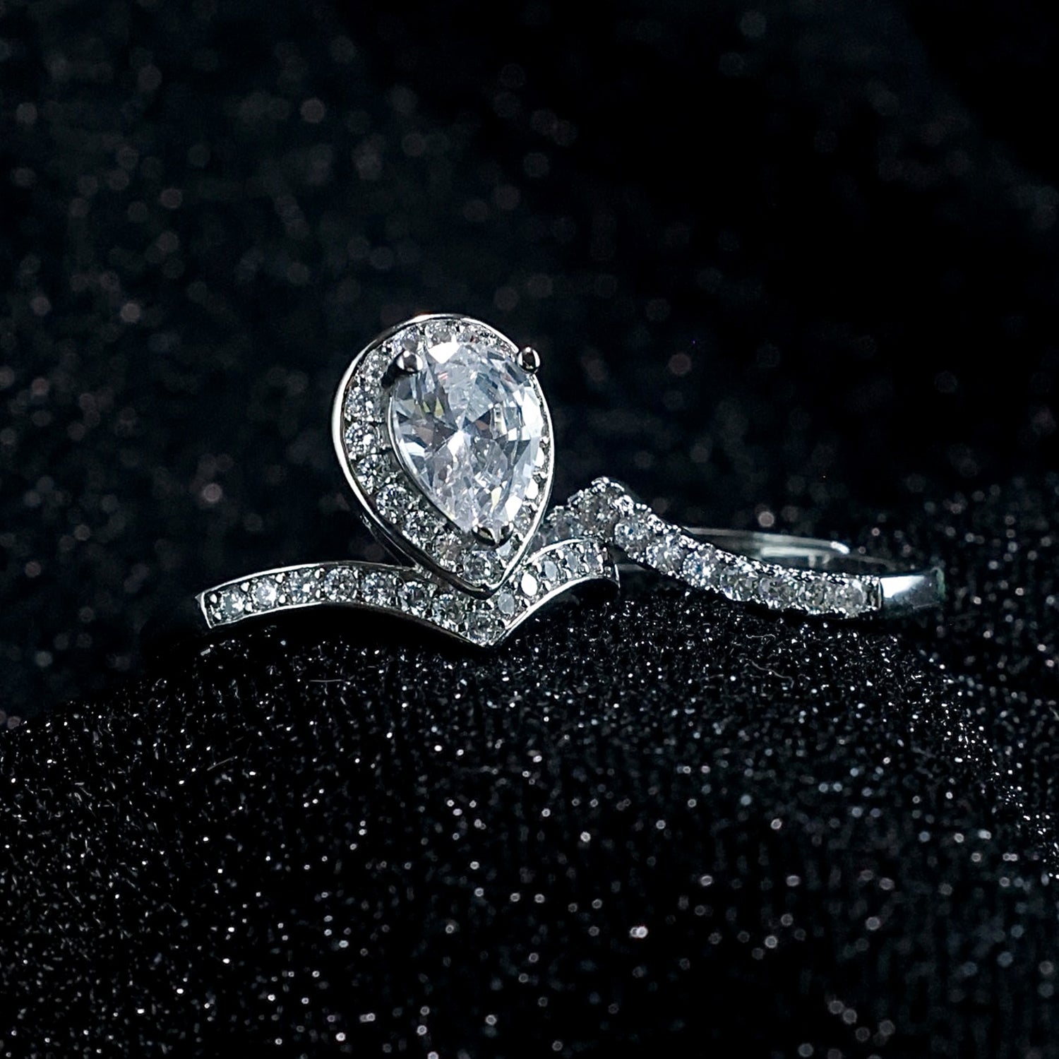 Joudwass Teardrop Halo CZ Ring Set-Silver-Tone Engagement & Wedding Bands